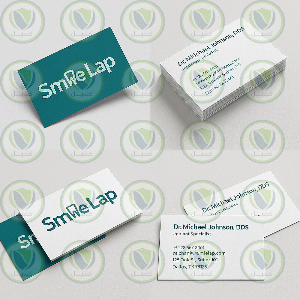 3. استخدام الشعار داخل نموذج كرت زيارة احترافي لطبيب أسنان.