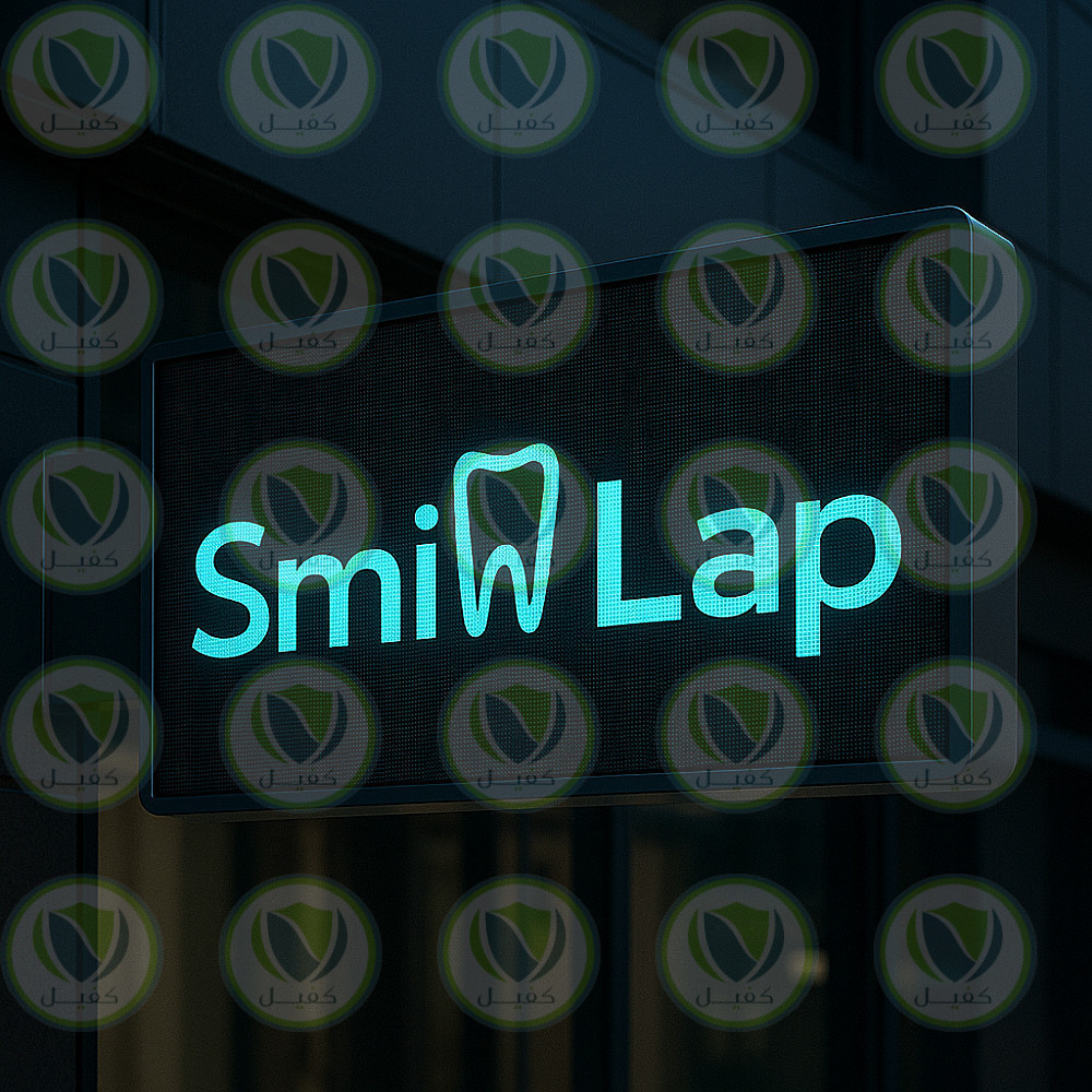 يافطة إلكترونية متحركة تحمل اسم Smile Lap بأسلوب حديث.