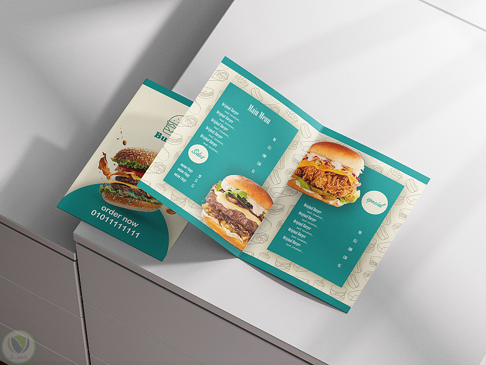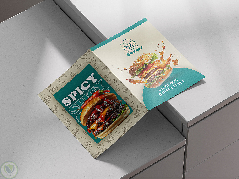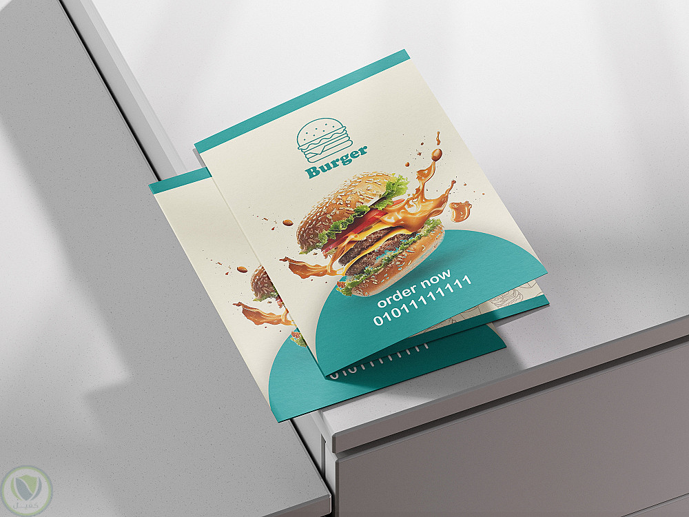 تصميم منيو لمطعم برجر بأسلوب بسيط و ألوان حيوية تعبر عن شخصية المكان.