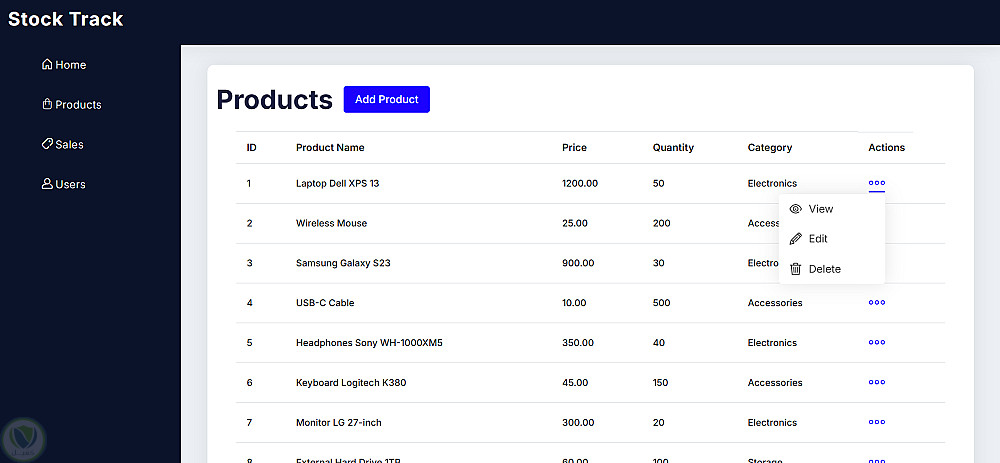 إدارة المنتجات: نظام CRUD لإضافة وتعديل البضائع، وتتبع الكميات في المخزون.