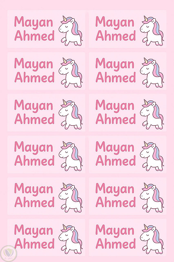 تتضمّن التصميمات رسومات لطيفة وألوان مبهجة وشخصيات مرحة، مع الحفاظ على وضوح الاسم وسهولة الاستخدام.