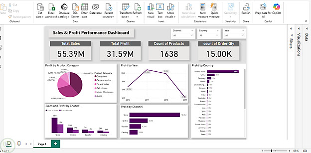 تم استخدام tool power BI لتحليل أداء الارباح والمبيعات أنها شهدت نموا ملحوظا