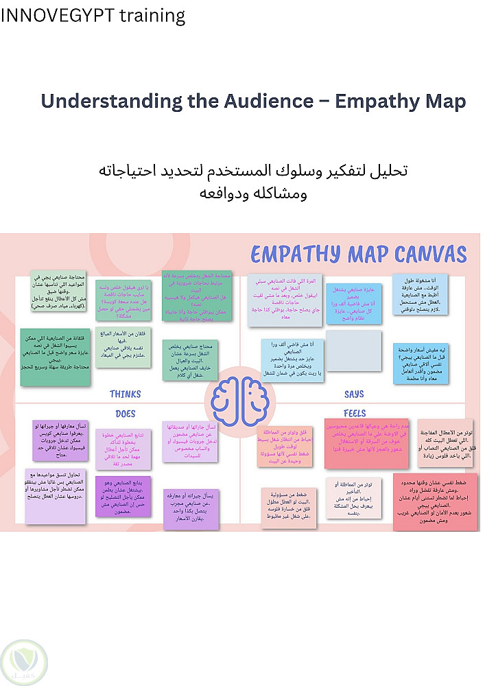 Empathy Map لتوضيح احتياجات وتحديات المستخدمين.