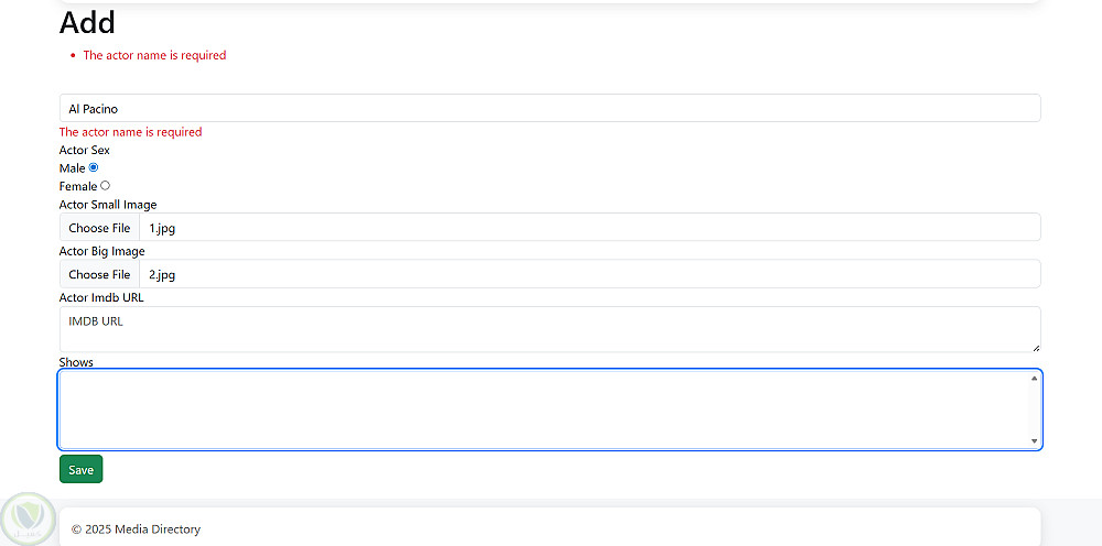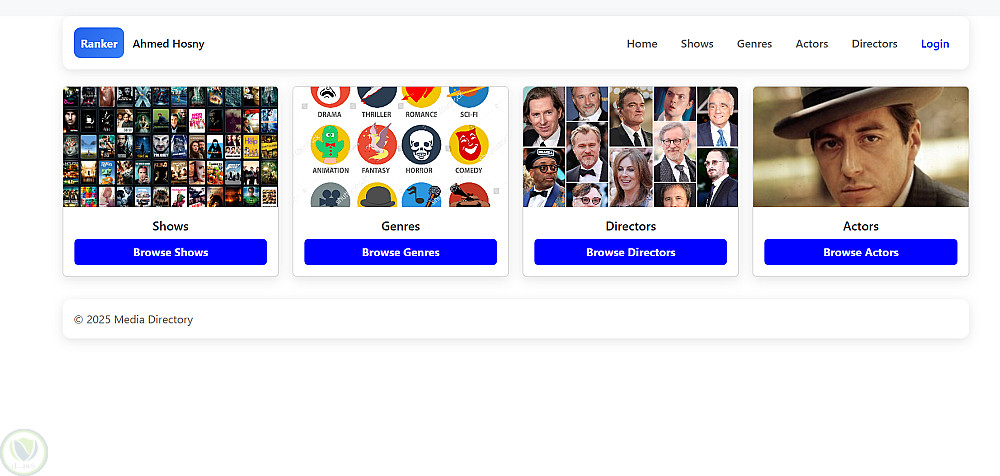 موقع خاص بي أضع به معلومات عن العروض التي شاهدتها سواء كانت أفلام أم مسلسلات مع وصف لها و الممثلين الذين شاركوا فيها و النوع الخاص بالعمل (رعب, كوميديا ,إلخ) ومعلومات عن الممثلين و المخرجين الخاصين بهذه الأعمال
