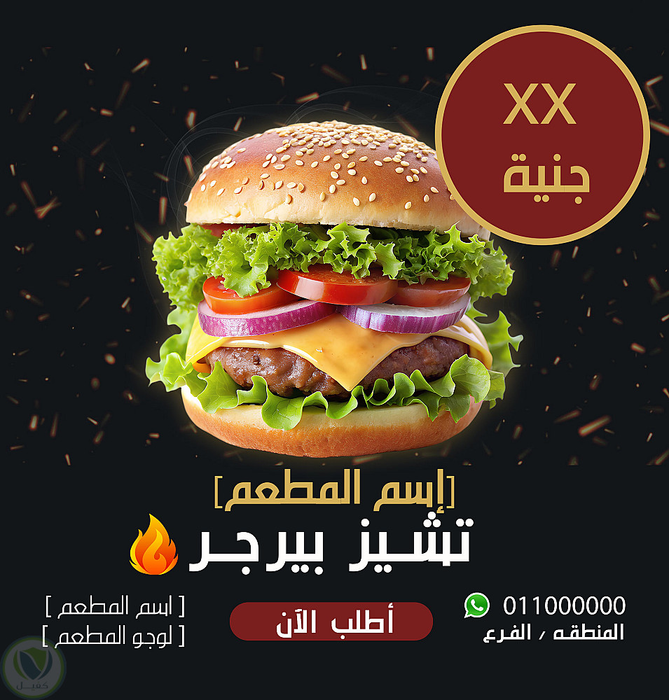 اختيار ألوان مناسبة للأكل والهوية تنسيق الصور بطريقة احترافية إضافة النص المطلوب على التصميم تسليم بجودة عالية HD جاهزة للنشر