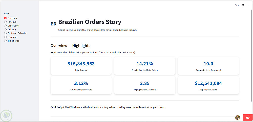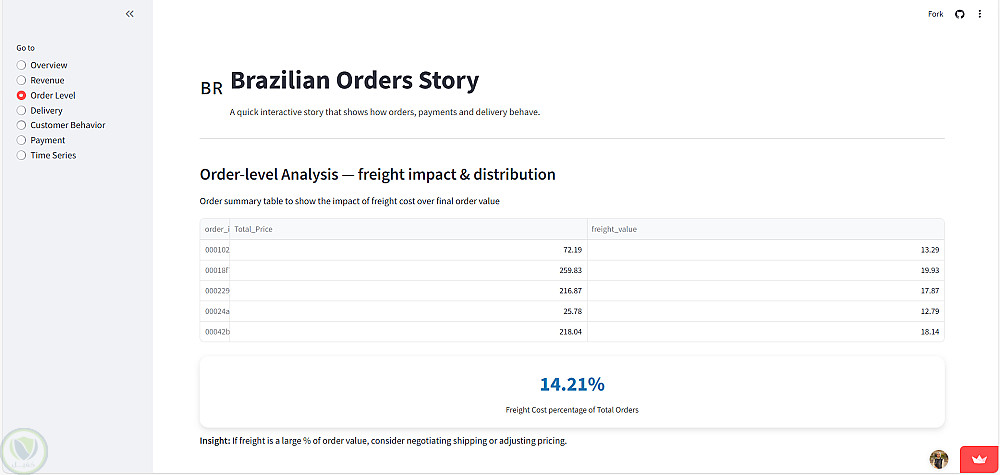 يهدف هذا المشروع إلى تحليل بيانات طلبات التجارة الإلكترونية في البرازيل خلال فترة 3 سنوات، مع التركيز على فهم سلوك العملاء، أنماط الطلبات، أداء المنتجات، وتجربة العملاء من خلال التقييمات.