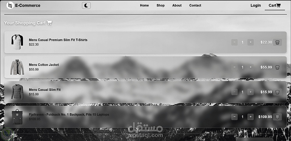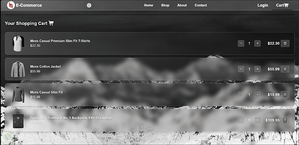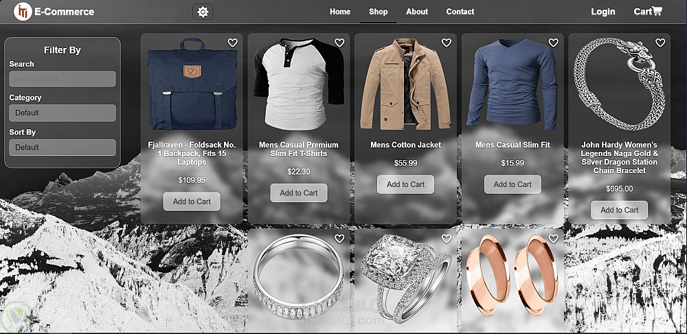 كما يتضمن المشروع نظام عربة تسوق متكامل يتيح إضافة المنتجات، تعديل الكميات، الإزالة، وحفظ البيانات باستخدام LocalStorage، بالإضافة إلى نظام المفضلة.