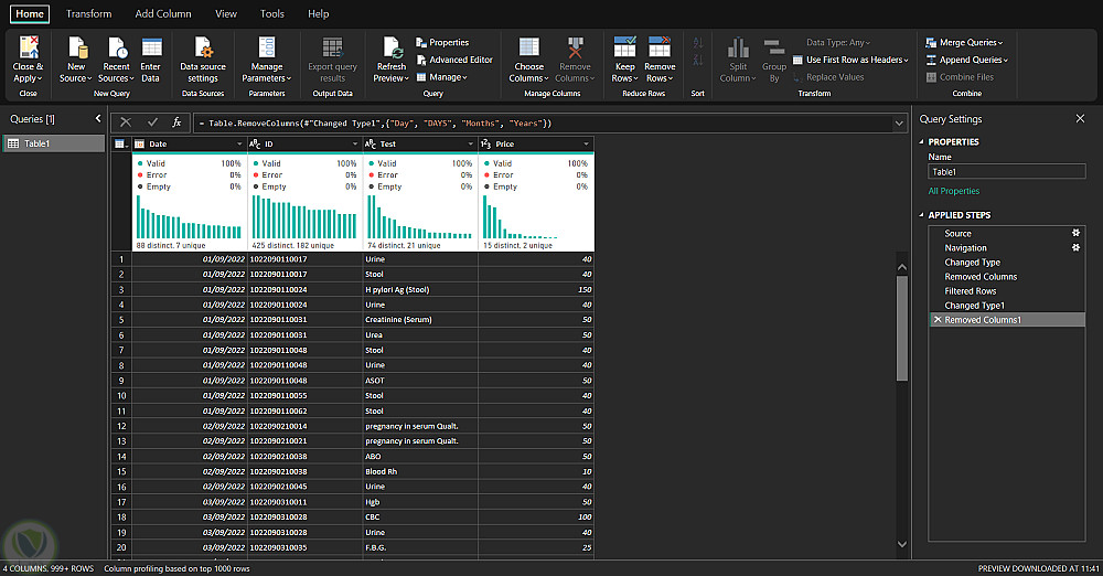 باستخدام Power Query قمت بـ: