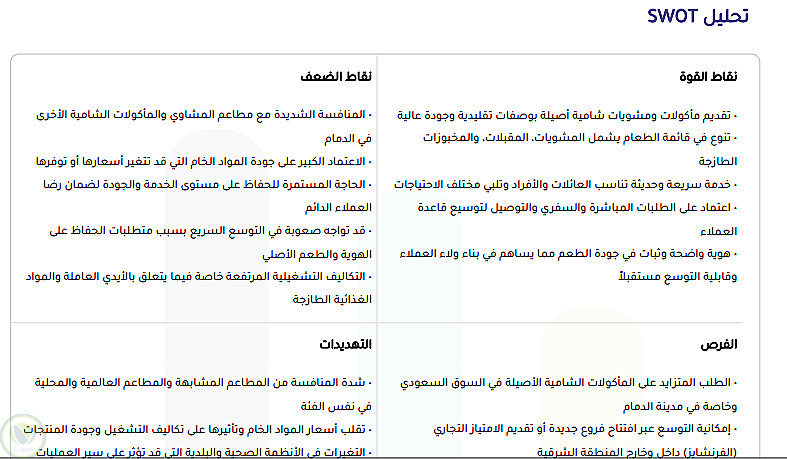 دراسة جدوى مطعم أكلات شرقية بالدمام