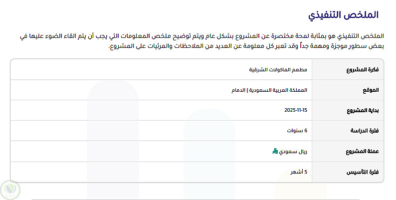 قمت بعمل دراسة جدوى مطعم أكلات شرقية مُنجزة بنجاح
