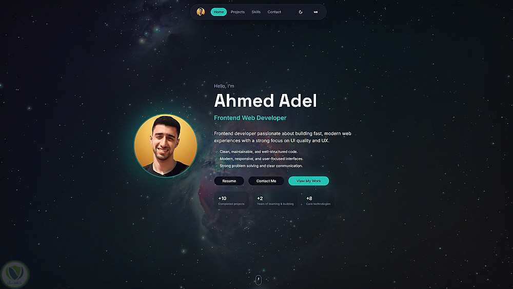 موقع سيرة ذاتية حديث متعدد اللغات مع لوحة تحكم إدارية لعرض المشاريع والمهارات.