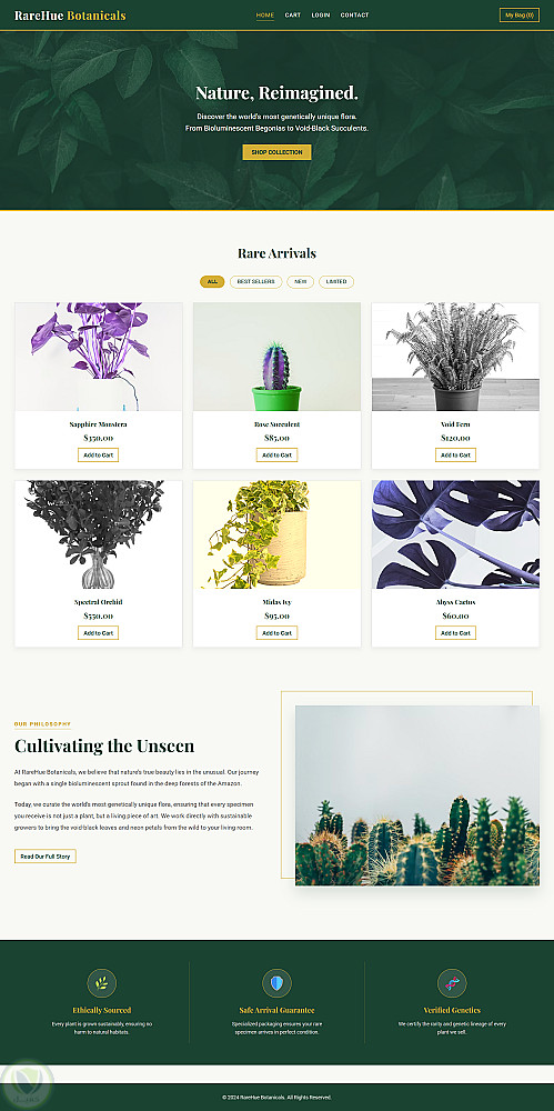 الموقع ليس مجرد متجر إلكتروني، بل تجربة بصرية فاخرة تعكس فلسفة “إعادة تخيل الطبيعة (Nature, Reimagined)”، حيث يتيح للمستخدمين استكشاف نباتات نادرة مثل Sapphire Monstera وVoid Fern، التعرف على تفاصيلها وشرائها بسهولة، مع واجهة أنيقة تليق بقيمة المنتجات.