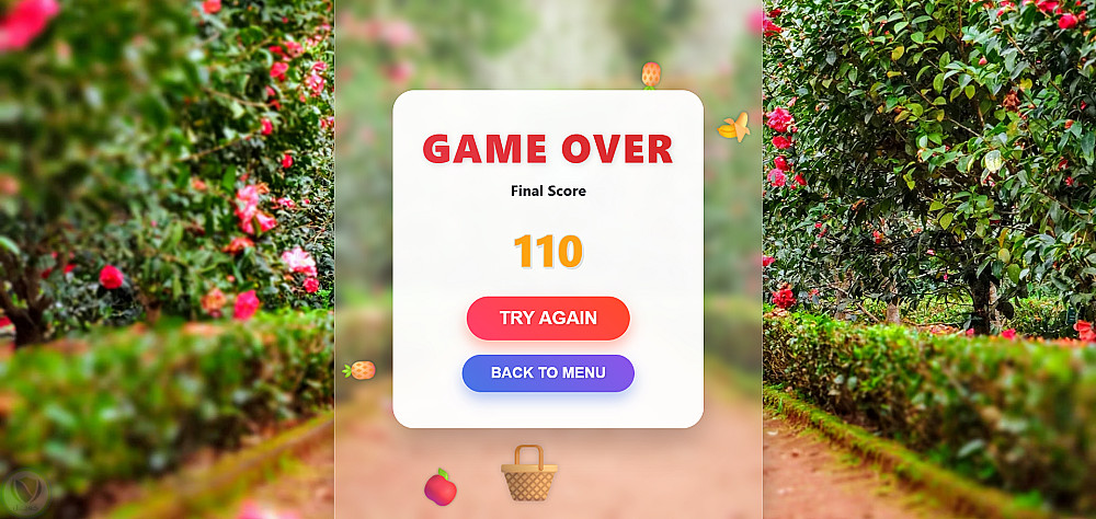 أقدم لكم مشروعي الخاص: لعبة سلة الفواكه (Fruit Basket)، وهي لعبة ويب تفاعلية تعتمد على السرعة والتركيز.