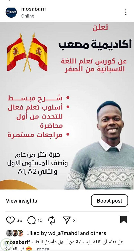 تصميم بوست إعلاني لإنستغرام للترويج لدروس اللغة الإسبانية