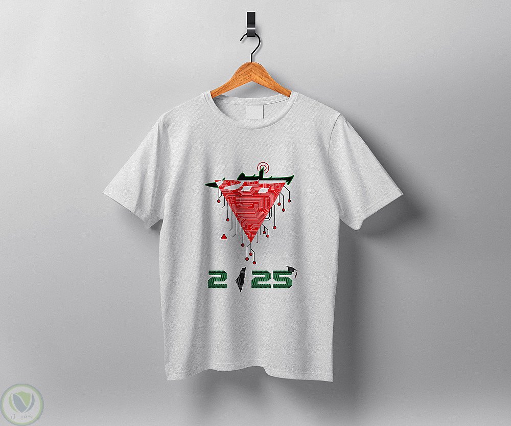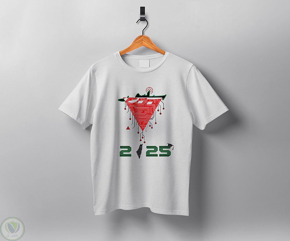 التصميم العام للتيشيرت يهدف إلى تجسيد الهوية العربية الأصيلة، وذلك من خلال دمج كلمة "سنيور" باللغة العربية بخط أنيق وبارز، لتعكس اعتزازهم بانتمائهم الثقافي. يتضمن التصميم أيضًا مثلثًا أحمر اللون يحتوي هذا المثلث على مجموعة من التفاصيل الدقيقة والأدوات و الانماط التي ترمز بشكل خاص إلى قسم الاتصالات والحاسبات، مما يجعله وثيق الصلة بمجال دراستهم. وأخيرًا، تظهر سنة التخرج بوضوح باللون الأخضر الجذاب، لتكون بمثابة تذكير دائم بهذه المناسبة الهامة والإنجاز الكبير الذي حققوه.