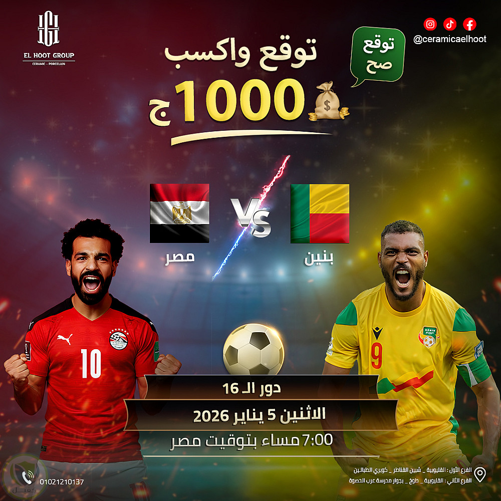 تصميم سوشيال ميديا باستخدام برنامج الفوتوشوب بوستر تفاعلي بمناسبة ماتش مصر وبنين
