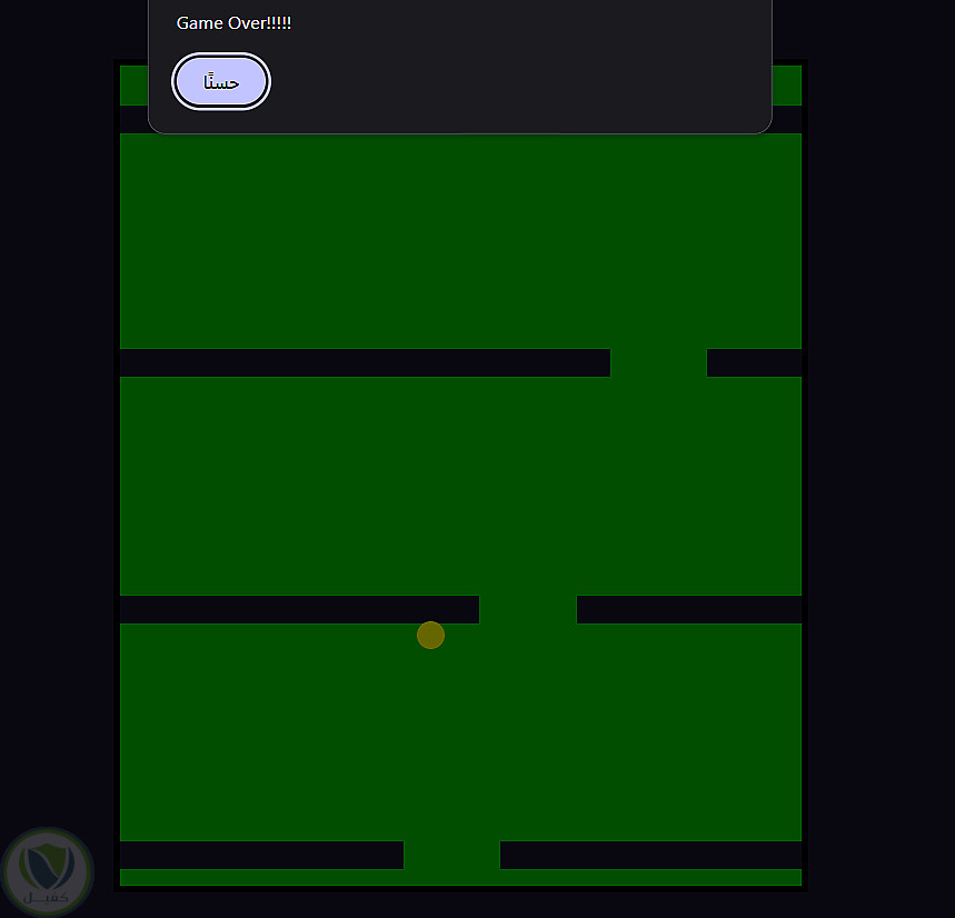 لعبة بسيطة عبارة عن تحريك الكرة لتخطي الحواجز الموجودة باللون الاسود وعند اصطدام الكرة بالحاجز يعرض الموقع رسالة game over كما هو موضح الصور.
