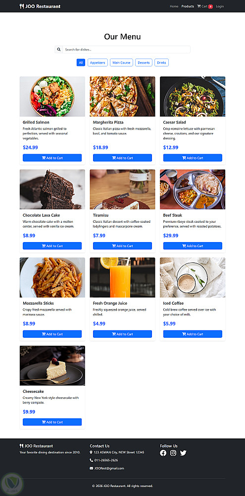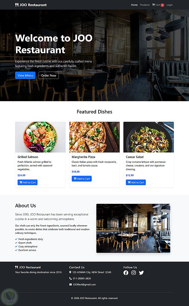 موقع Joo Restaurant هو موقع إلكتروني مخصص لمطعم، يهدف إلى عرض المنتجات وتسهيل عملية الطلب أونلاين بطريقة بسيطة وسلسة للمستخدم.