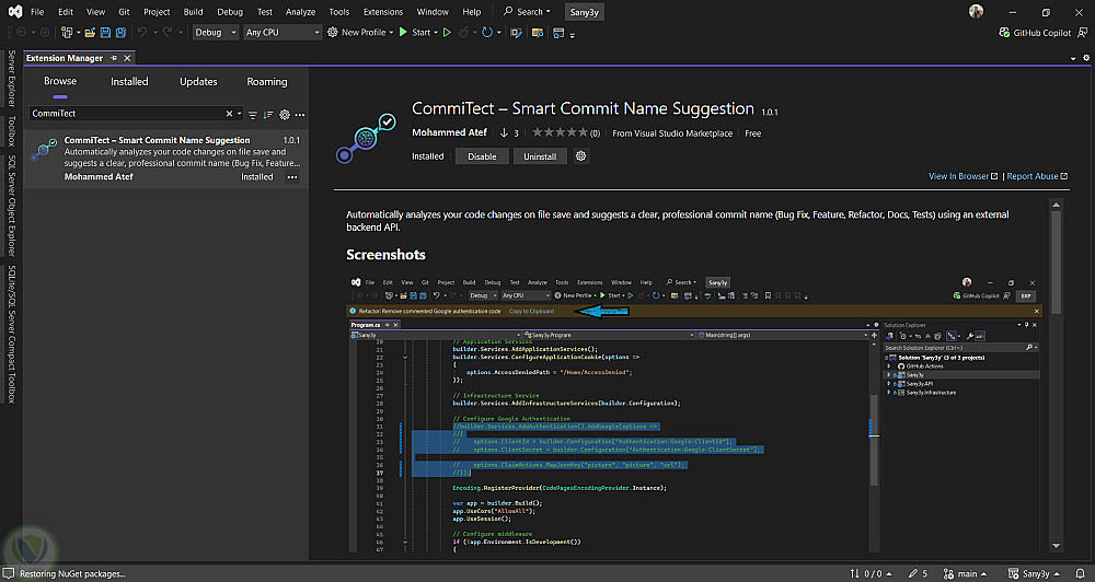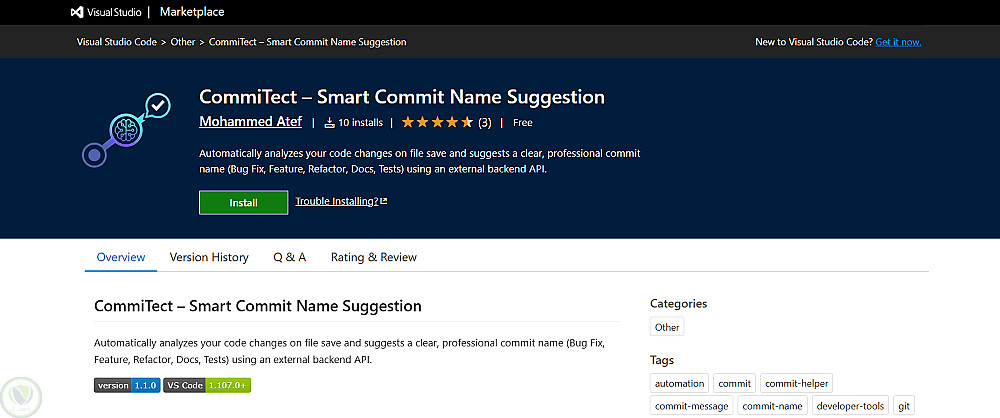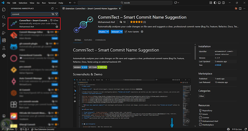 CommiTect – إضافة ذكية لتحليل تغييرات الكود واقتراح أسماء Commit