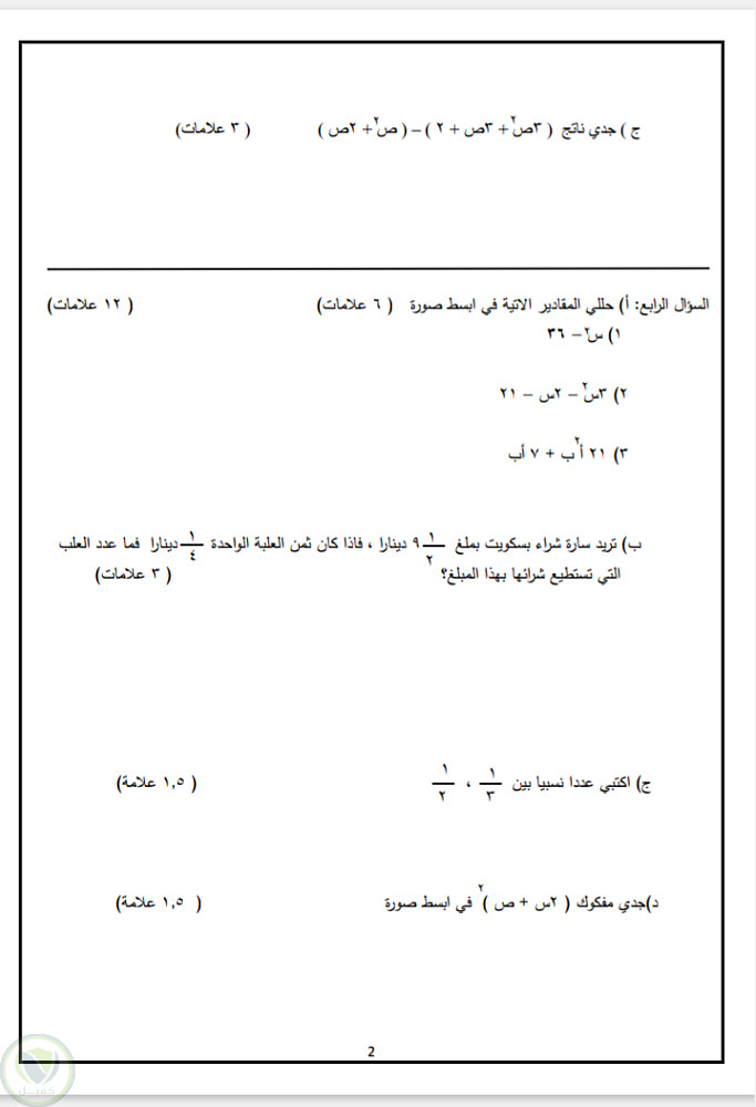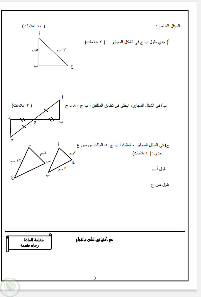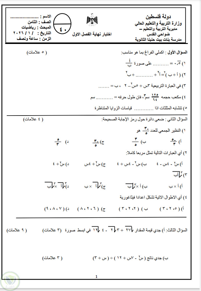 قمت بكتابة وتنسيق امتحان رياضيات للصف الثامن على world