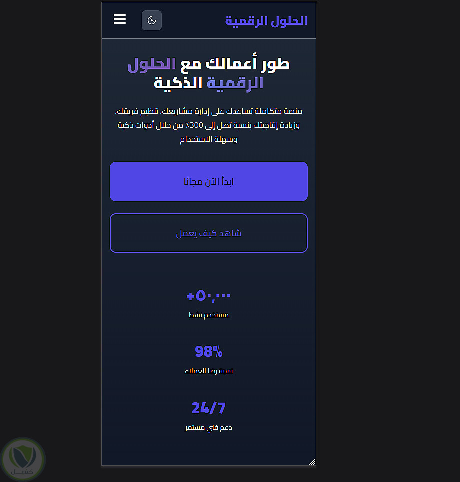 تصميم وتطوير Landing Page عربية حديثة لمنصة حلول رقمية