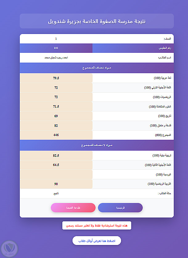 موقع لعرض درجات الطلاب في مدرسة
