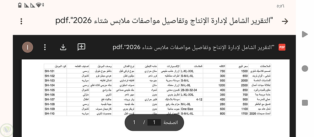 العنوان: التقرير الشامل لإدارة إنتاج ومواصفات ملابس شتاء 2026