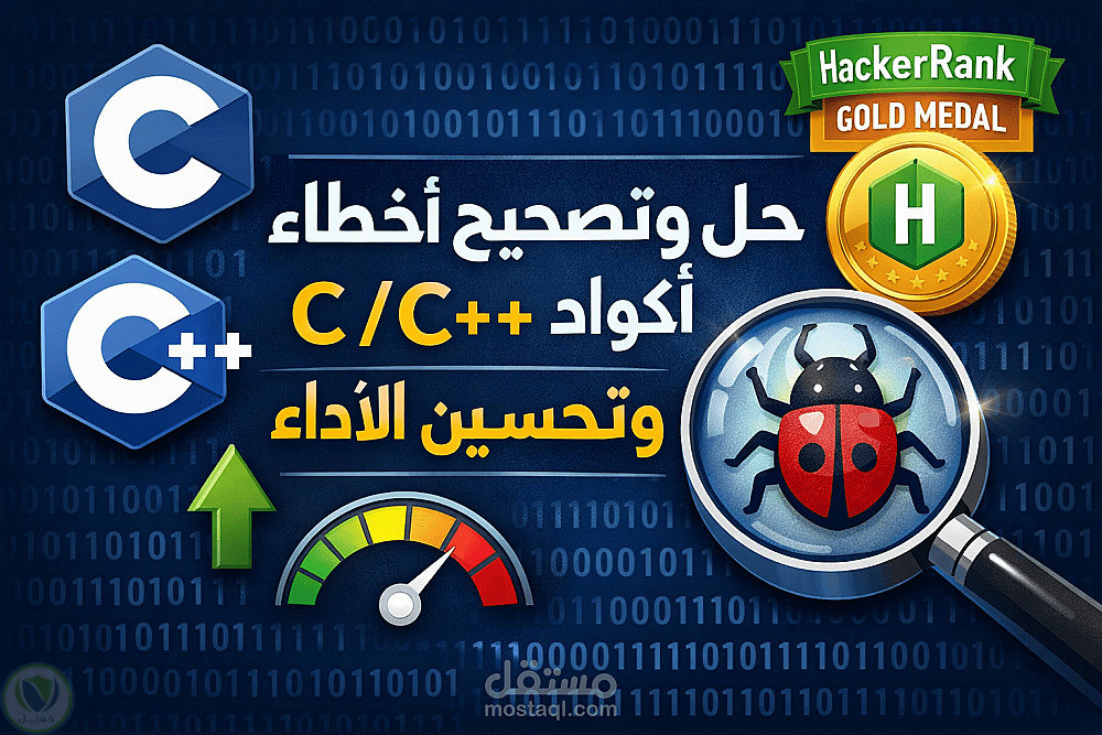 قمت بحل وتصحيح أخطاء أكواد مكتوبة بلغة C / C++ مع التركيز على تحليل المشاكل المنطقية وأخطاء التنفيذ وتحسين أداء الكود.