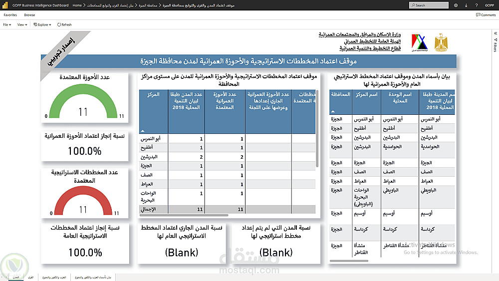 تم إعداد منصة تشاركية لبيان موقف اعتماد المخططات للتجمعات وهي عبارة عن عدد من اللوحات المعلوماتية التفاعلية (Dashboard) تم ربطها بقاعدة بيانات، وتصميمها ونشرها.
