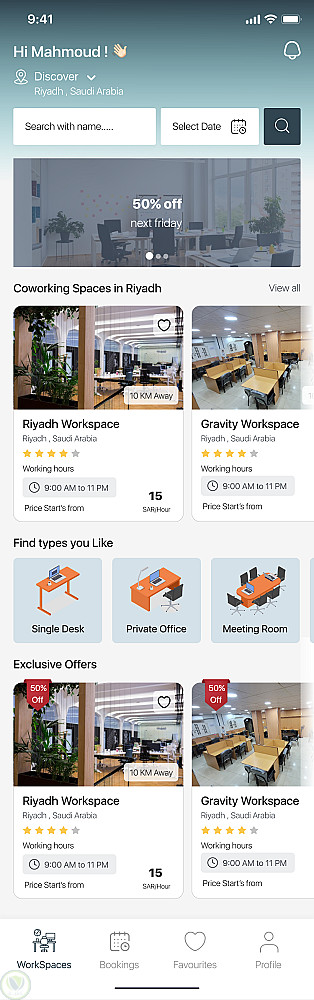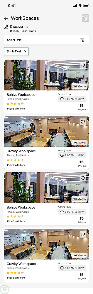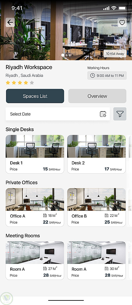 يتيح هذا التطبيق للمستخدمين استعراض ال Work Spaces المتاحة، والاطلاع على تفاصيلها، وحجز المساحات التي تناسب احتياجاتهم