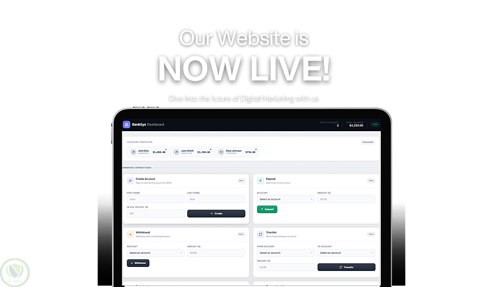 BankSys هو نظام مصرفي احترافي متكامل مطور بـ JavaScript و Node.js بدون أي إطارات عمل خارجية. يوفر 10 وظائف بنكية أساسية تشمل: إنشاء الحسابات، الإيداع، السحب، التحويل، حساب الفوائد، استرجاع المعاملات، تجميد/إلغاء تجميد الحسابات، حدود السحب اليومية، التحقق من كلمات المرور، وكشف الأنشطة المشبوهة. يتميز بواجهة لوحة تحكم تفاعلية بلون فضي/بلاتيني مع إشعارات فورية، إحصائيات حية، وبطاقات متحركة. يعتمد على بنية معيارية نظيفة مع فصل واضح بين المنطق والواجهة، ويعمل بدون تبعيات خارجية — الواجهة بـ HTML/CSS/JS الخالص والباك اند يستخدم فقط مكتبات Node.js
