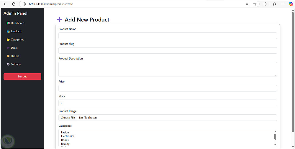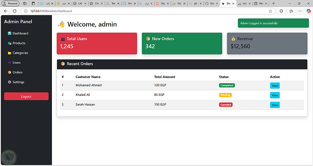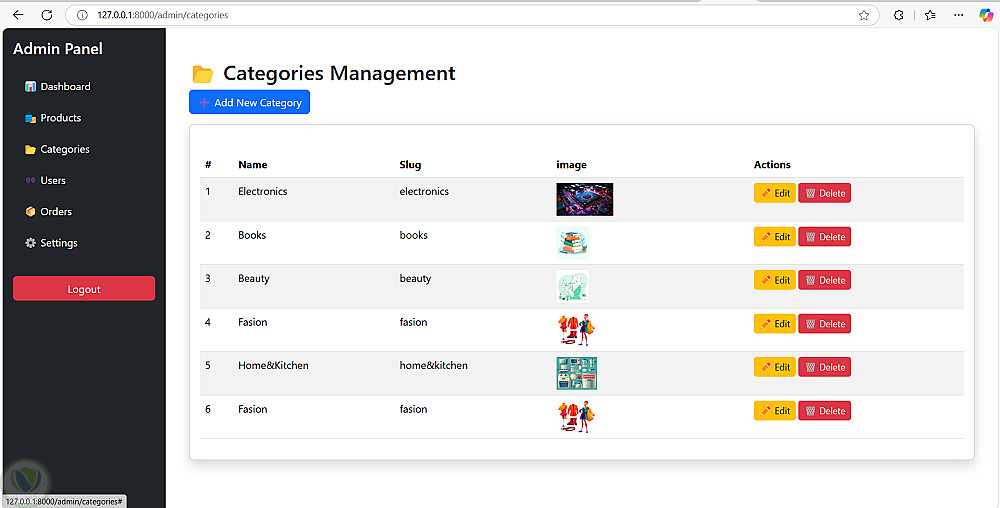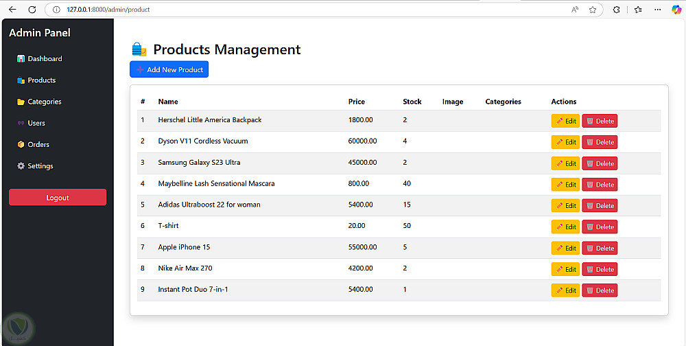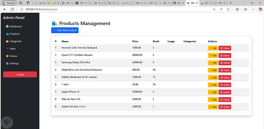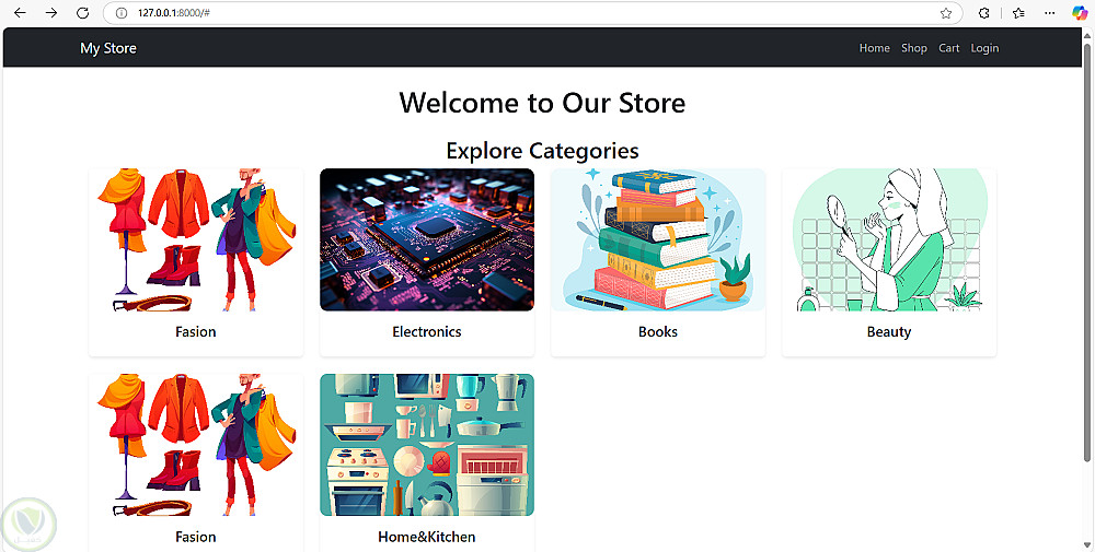 تم عمل متجر الكتروني يحتوي علي العديد من ال فئات وكل فئه تحتوي علي عناصر ، الادمن يمكن اداره ال فئه بحيث يستطيع الاضافه والحذف ويستطيع اضافه او حذف منتجات من داخل اي فئه ويمكنه متابعه الاوردرات وحساب المكسب الفعلي