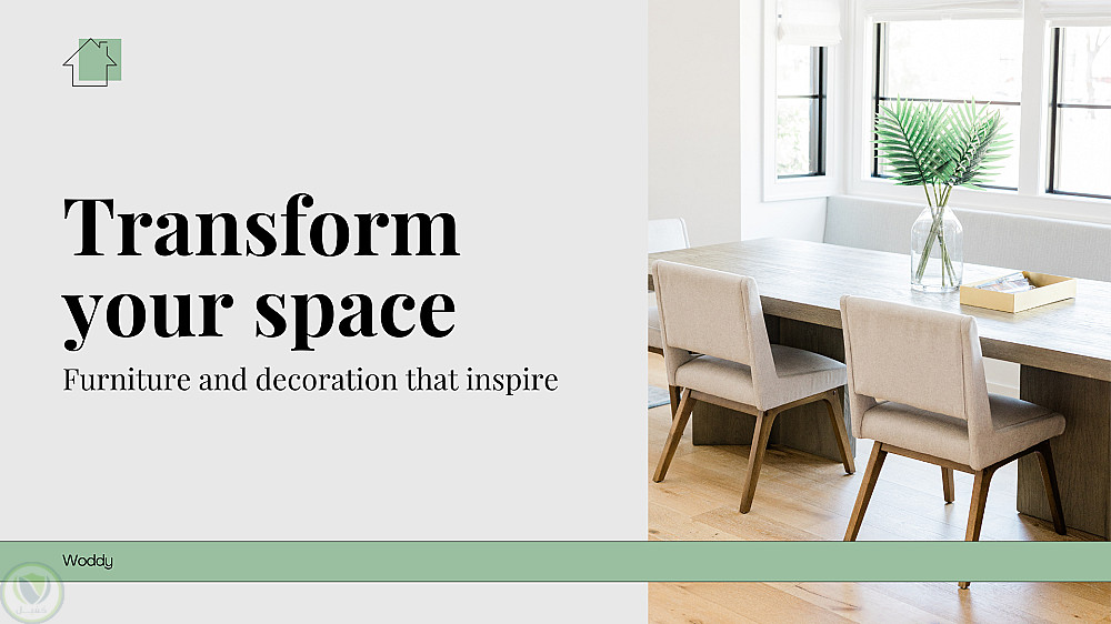- ألوان محايدة مع لمسات خضراء لإضفاء لمسة حيوية وجذب الانتباه للعناصر المهمة.