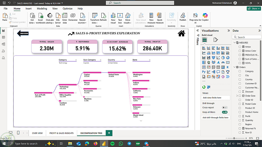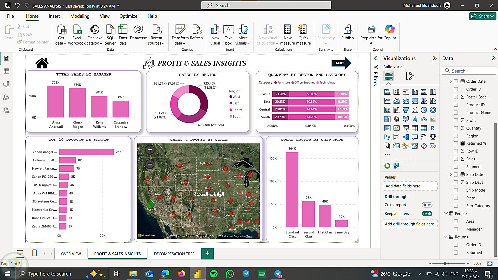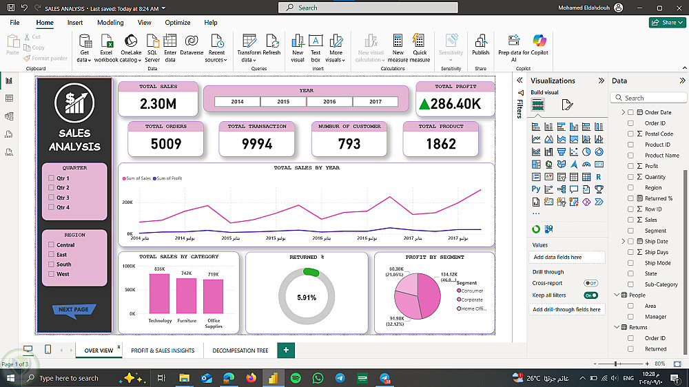 قمت بتطوير Sales Dashboard تفاعلية باستخدام Power BI لعرض وتحليل أداء المبيعات.