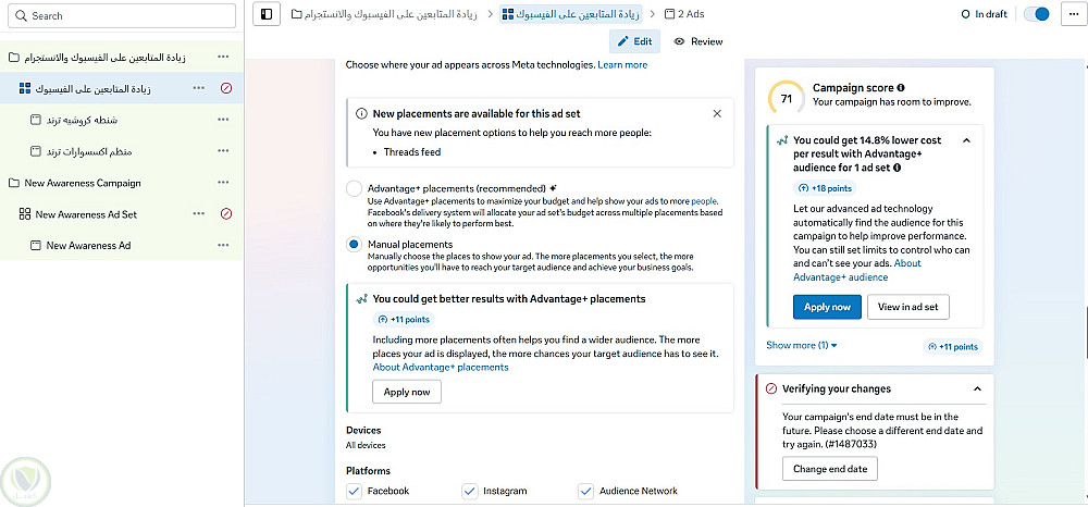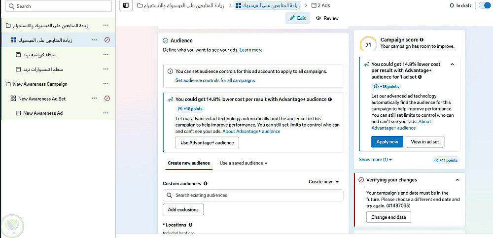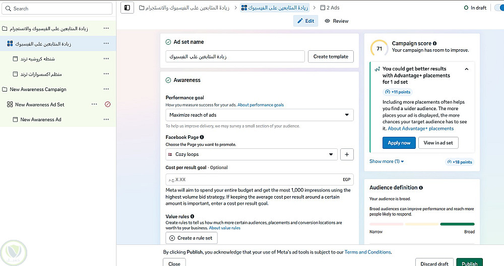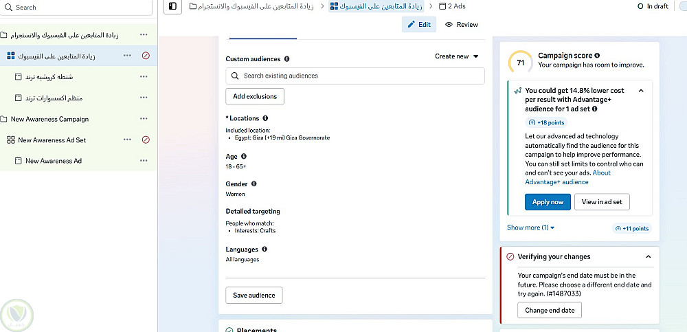اعلان فيسبوك عن منتجات الكروشيه بهدف الوعي وزيادة المتابعين