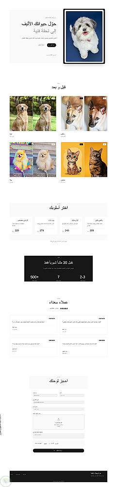 تصميم صفحة هبوط لخدمة البورتريهات الرقمية للحيوانات الأليفة