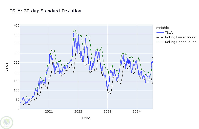 تسلا (TSLA): حققت أعلى عائد تراكمي (~740%)، ولكن مع تقلبات كبيرة (تتراوح العوائد اليومية من -20% إلى +20%).