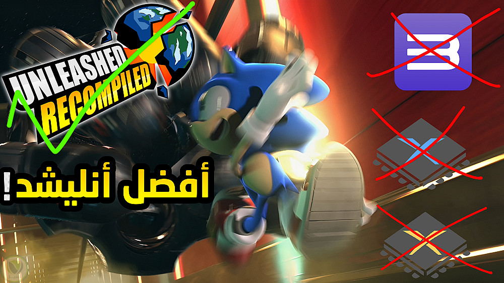 المحتوى: تركز الصور المصغرة على إظهار جودة اللعبة (Sonic Unleashed) ومشروع Sonic Unleashed Recompiled، وتستخدم نصوصاً عربية واضحة وجذابة (مثل : "أفضل أنليشد!") لجمهور الألعاب العربي.
