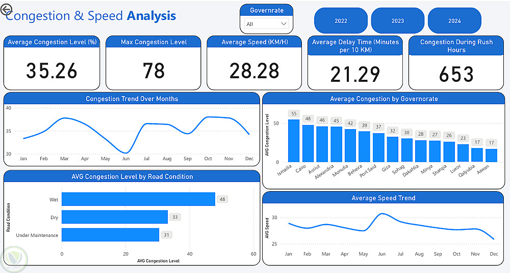 لوحة تفاعلية (داشبورد Dashboard) عن مشاكل الازدحام في الشوارع المصرية باستخدام Power BI باور بي اي و أكسيل