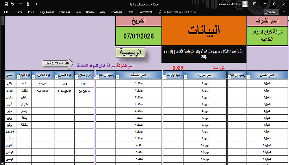 ملف مصمم بالاكسيل لكل صاحب مشروع او فرع