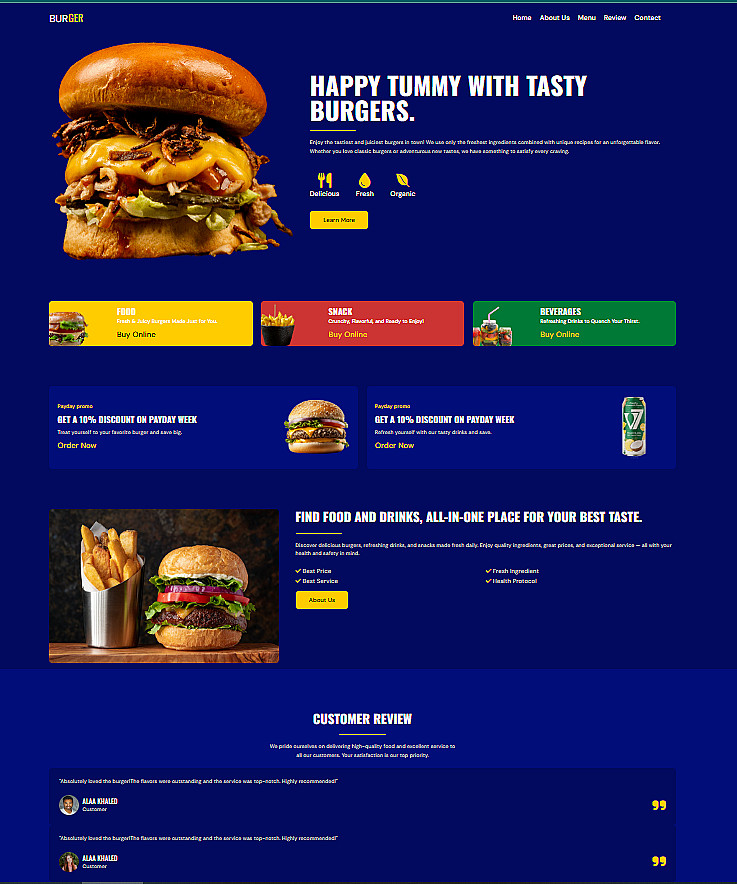 تصميم صفحة هبوط احترافية لمحل البرجر الخاص بك