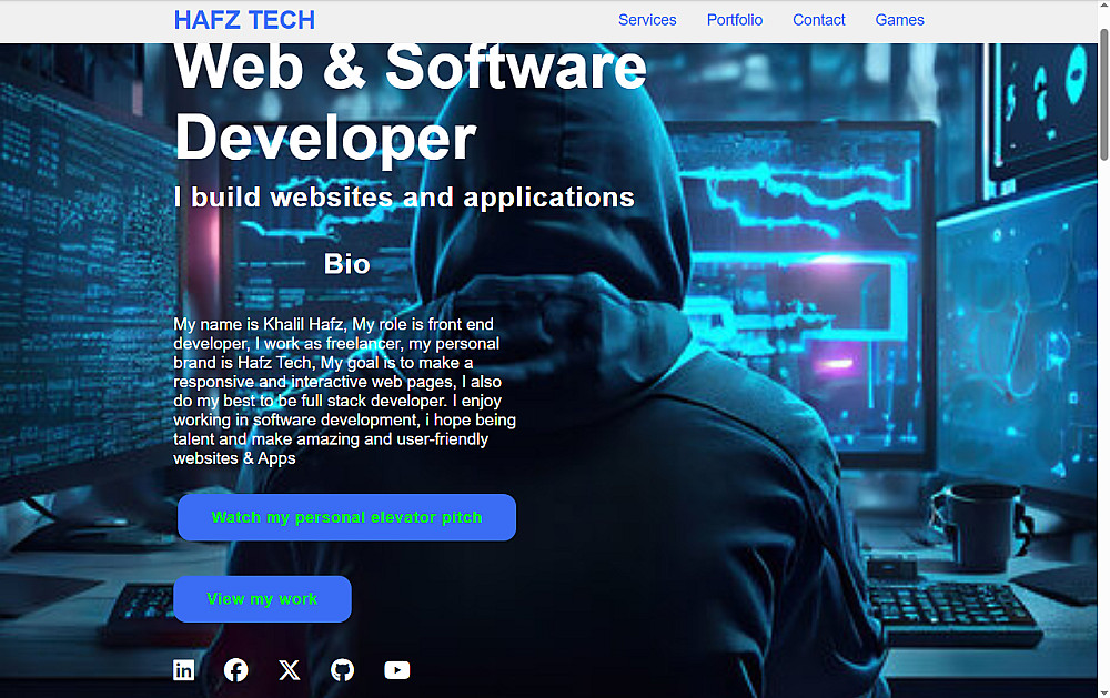 برمجة موقع الكتروني شخصي باستخدام رياكت يشمل الصفحة الرئيشية بها الخدمات المقدمة و صفحة التواصل و صفحة المشاريع بحد اقصي اربع صفحات و تشمل جميع الصفحات علي هيدر للتنقل بين الصفحات و فوتر به روابط الصفحات الشخصية علي مواقع التواصل مع تسليم العميل السورس كود