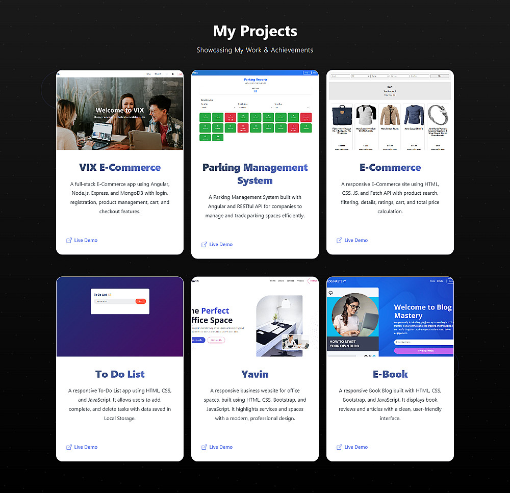 كما يتم تصميم البورتفوليو ليكون متجاوبًا مع جميع أحجام الشاشات والأجهزة، لضمان تجربة استخدام سلسة ومريحة على الهواتف، الأجهزة اللوحية، وأجهزة الكمبيوتر.