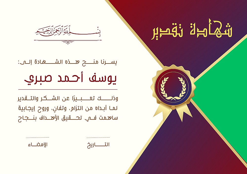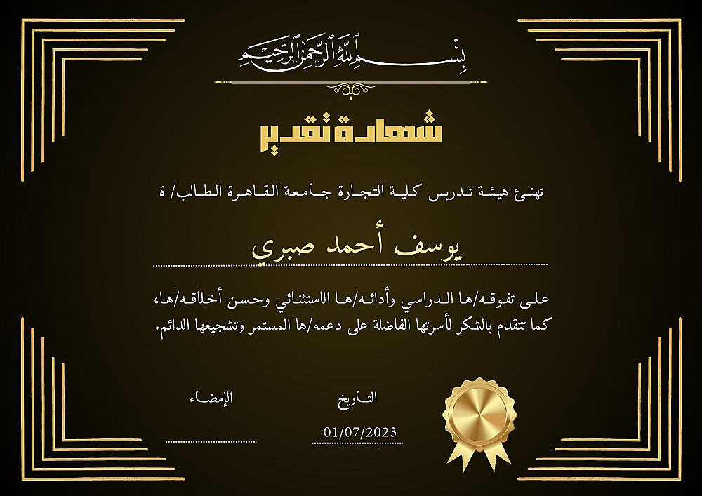 أقدّم لك خدمة تصميم شهايد تقدير بجودة عالية، مناسبة للطلاب والخىرجين ميع المنصات.