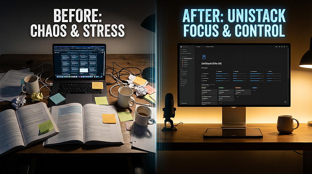 نسخة كاملة من نظام UniStack The Elite Student OS (جميع الأنظمة المذكورة أعلاه).