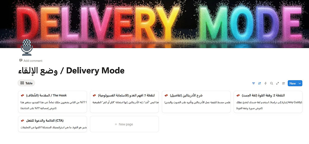 وضع الإلقاء (Delivery Mode): ميزة خاصة تخفي التفاصيل وتعرض لك رؤوس الأقلام فقط أثناء التصوير.
