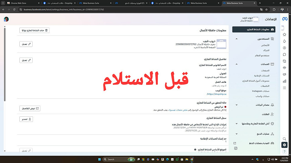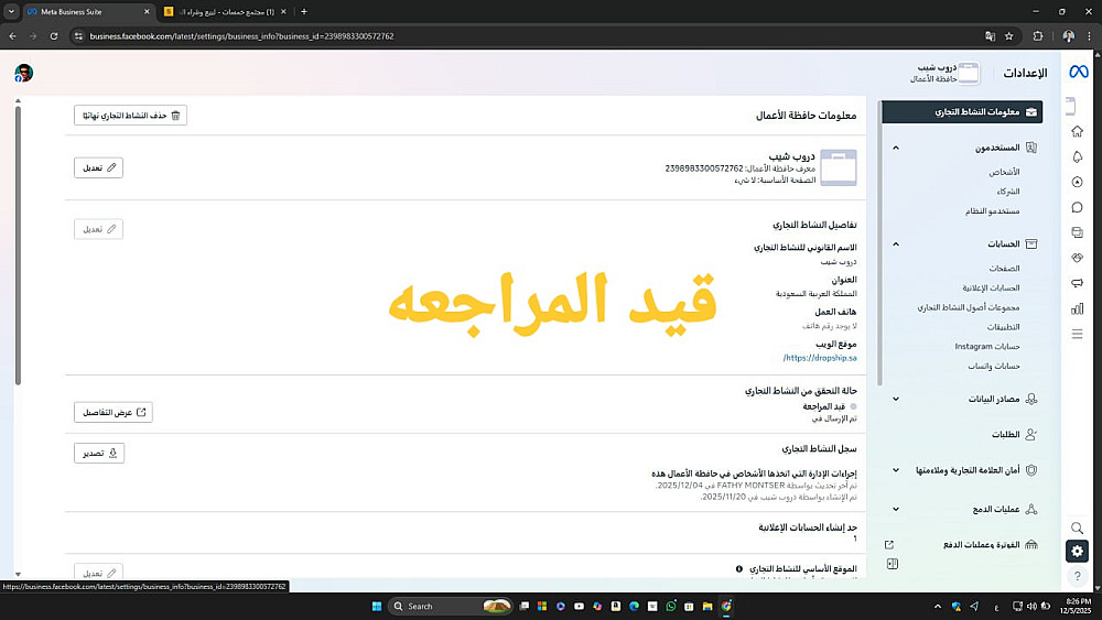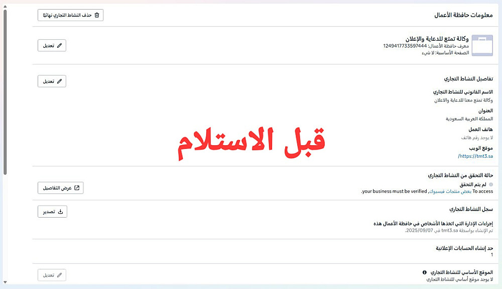 توثيق مدير أعمال فيسبوك (Meta Business Manager)