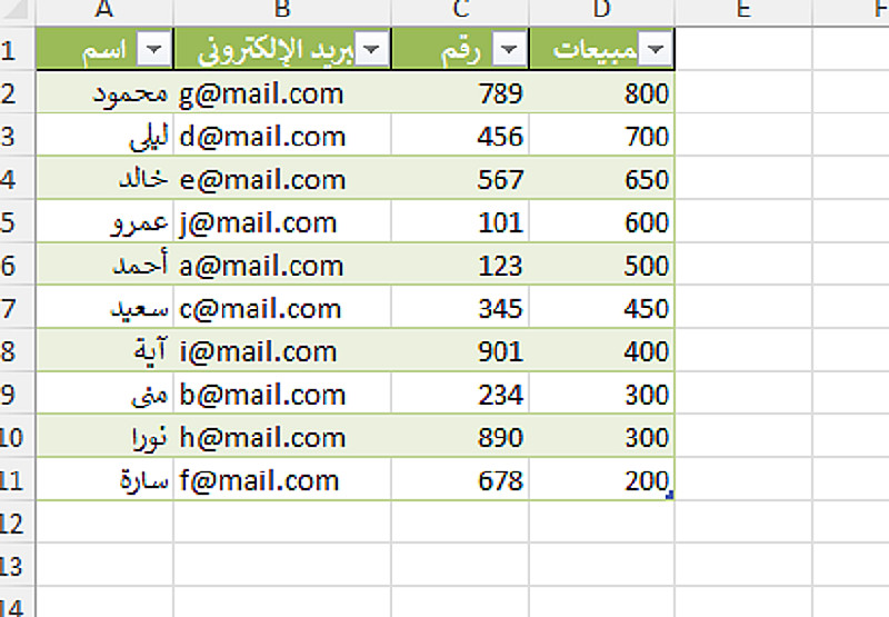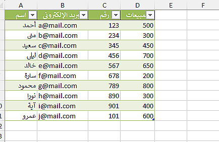 إدخال بيانات حتى 300 صف