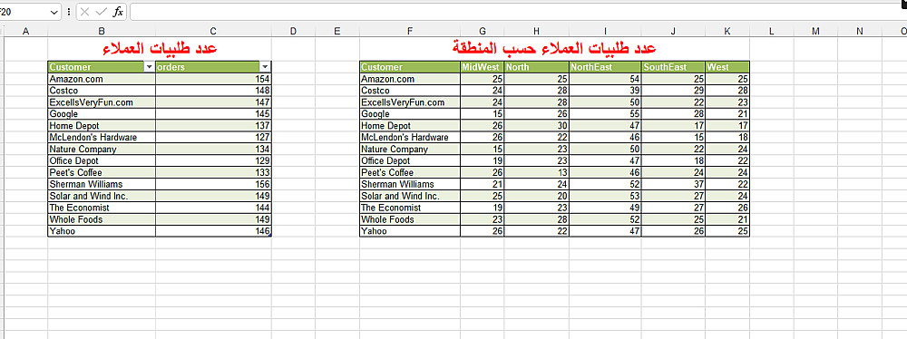 تلخيص بيانات حتى 500 صف