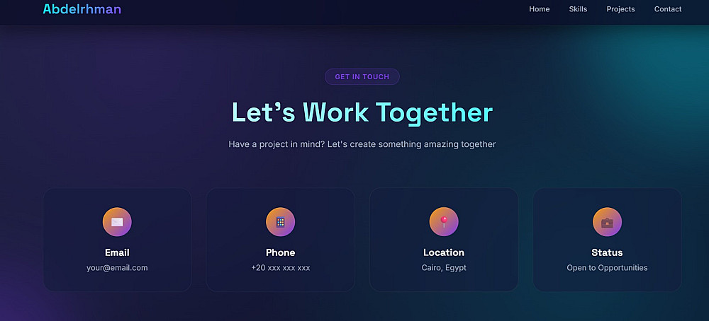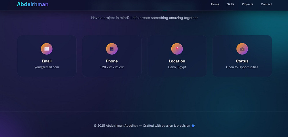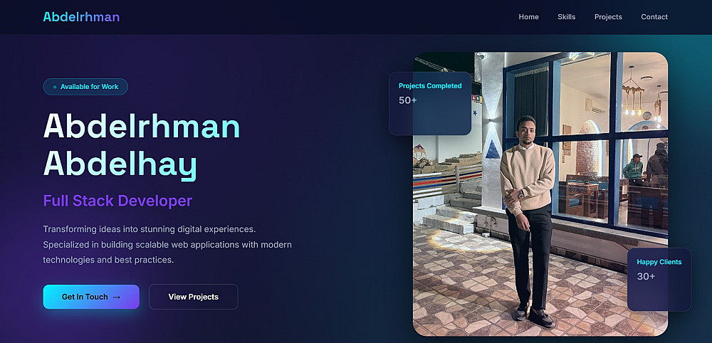 لو بتدور على تصميم Portfolio Website أو Hero Section احترافية تبرز شغلك وتعبّر عنك كمطوّر أو مصمّم بشكل عصري وجذاب، فأنت في المكان الصحيح.
